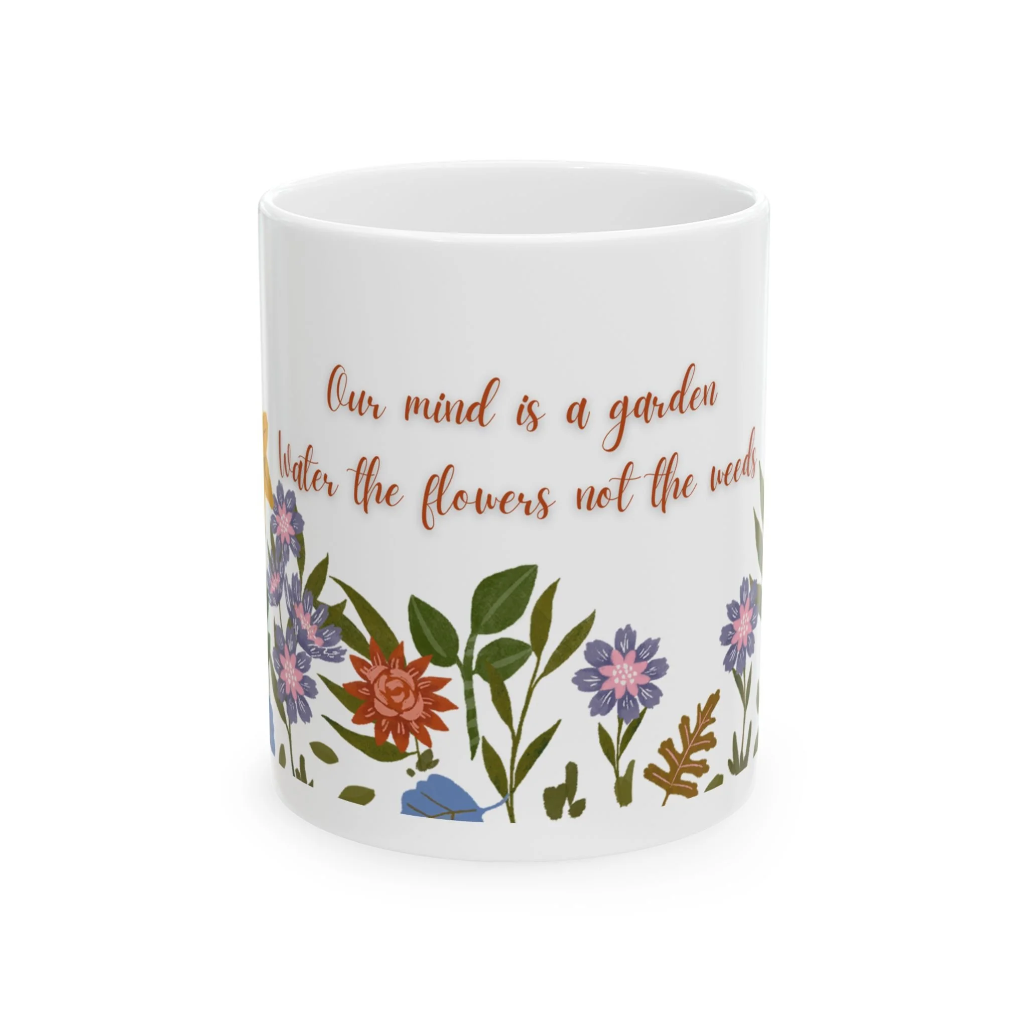 Floral Quote Mug - "Our mind is a garden" Ceramic Coffee Cup (11oz & 15oz)