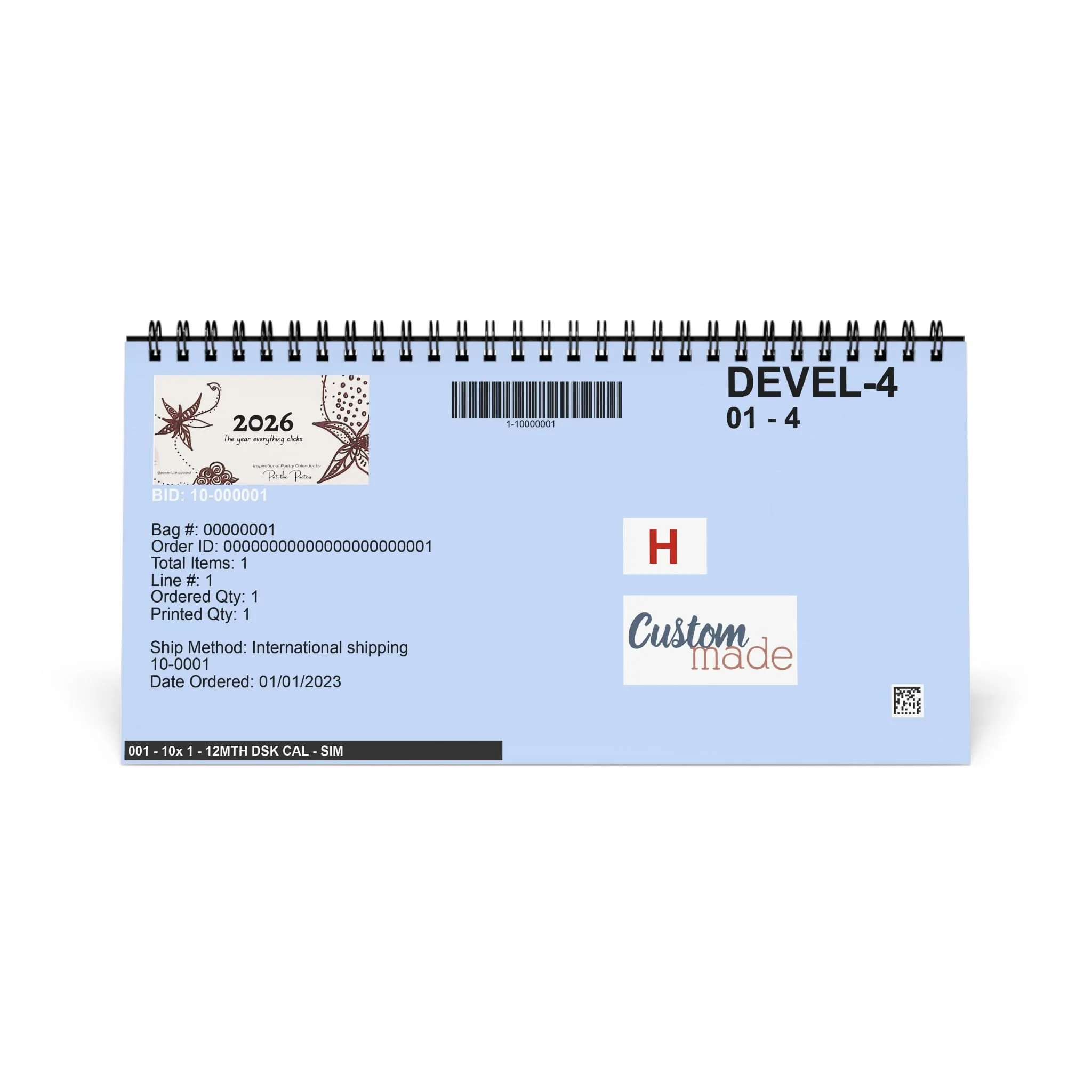 Available in one size (10" x 5"), each calendar comes with high quality, 250gsm paper stock and is spiral-bound at the top.